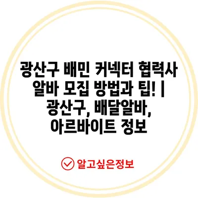 광산구 배민 커넥터 협력사 알바 모집 방법과 팁! | 광산구, 배달알바, 아르바이트 정보